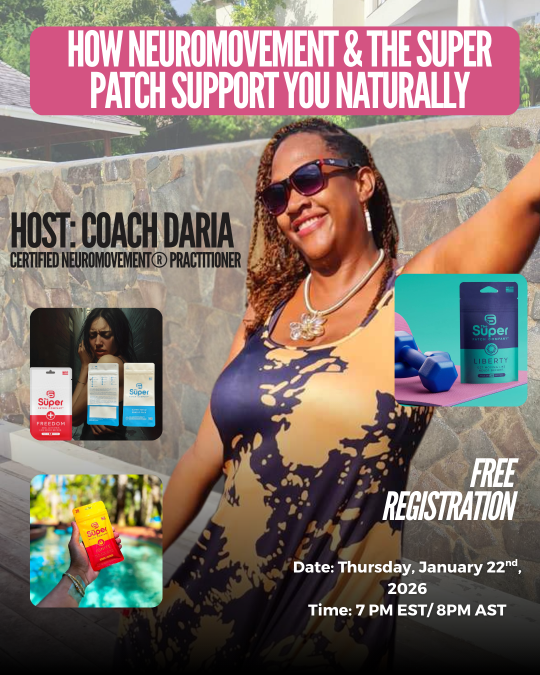 In this empowering session, Coach Daria will explain Neuromovement simple movement patterns that support the nervous system and how the Super Patch may help encourage calm, balance, and daily ease without overwhelm. Expect a warm, supportive space with practical guidance you can use right away.